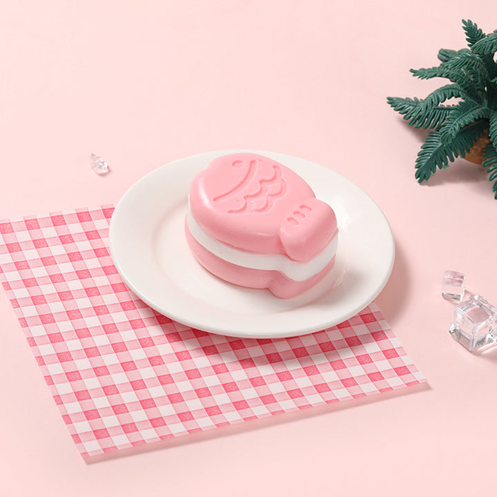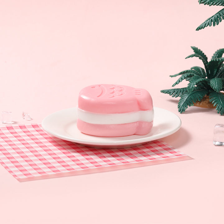 ❤️The Pink Macaron Swirled Taiyaki Taba Squishy was inspired by a cozy afternoon in a quaint bakery——soft layers of pink, white, and pink on a freshly baked taiyaki, each squeeze revealing a gentle, slow-rising texture that invites playful touches and sweet comfort right in the palm of your hand.