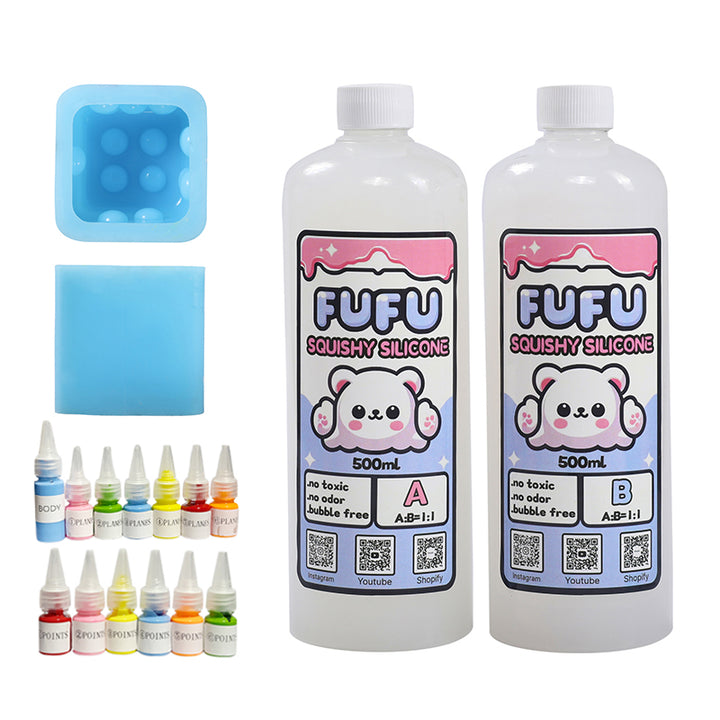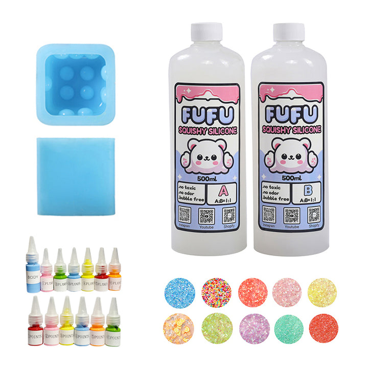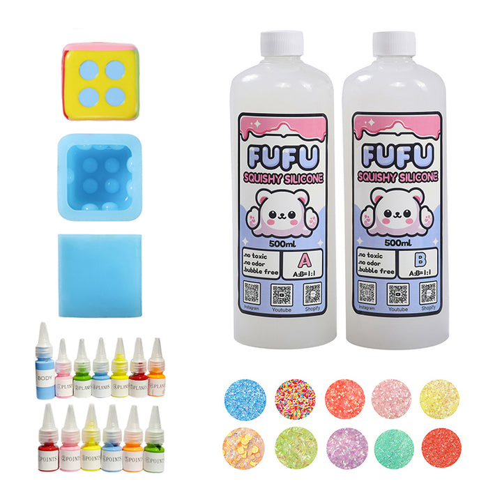 Mold+2*500mlGlueA&B+Color Paste(thirteen color)+Charms(10 bags)+1600g Giant Dice Squishy