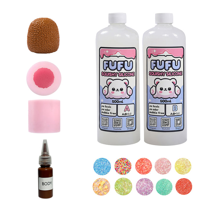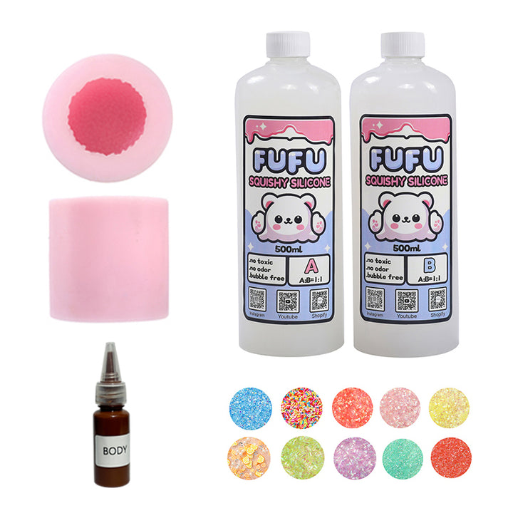 Mold+500mlGlueA&B+Color Paste(one color)+Charms(10 bags)+800g Chocolate Lychee Ball Squishy