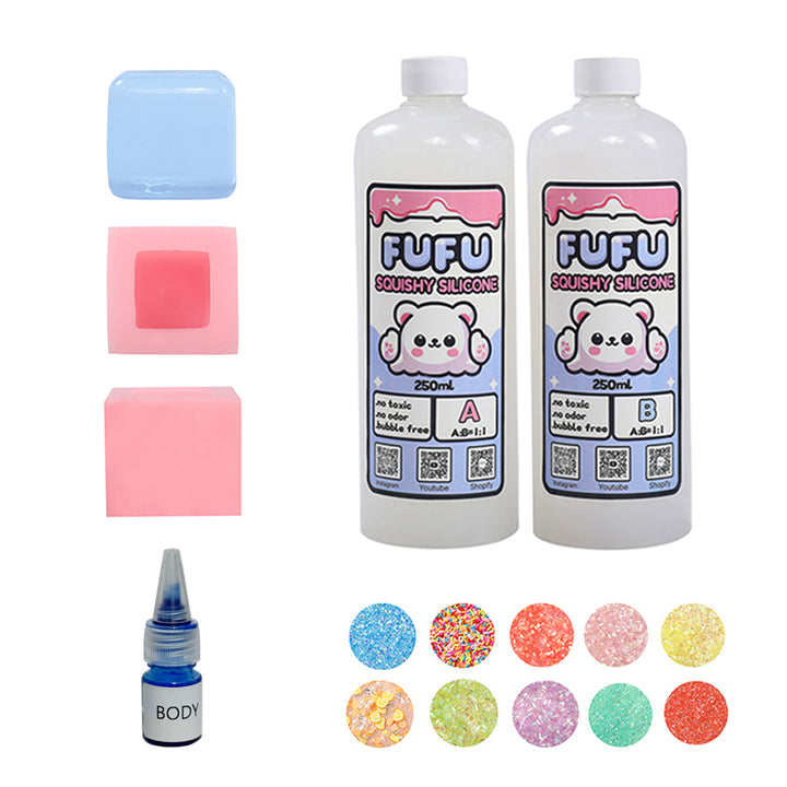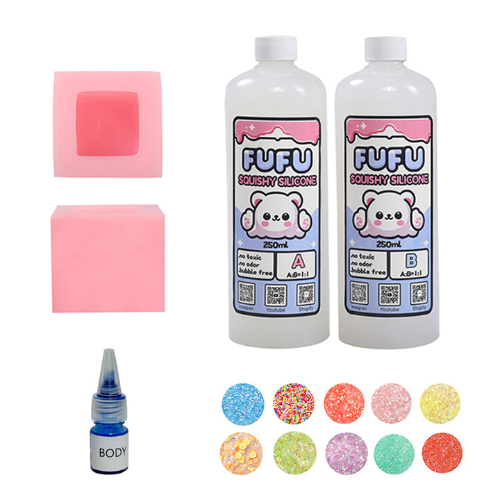 Mold+250mlGlueA&B+Color Paste(one color)+Charms(10 bags)+170g Ice Cube Squishy