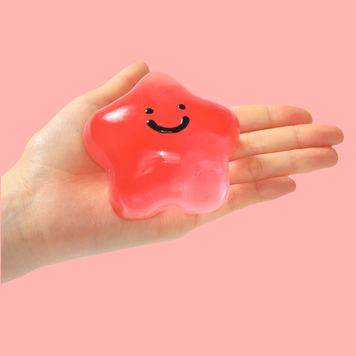 180g Crystal Red Transparent Smiley Star Taba Squishy – soft, playful, and full of charm