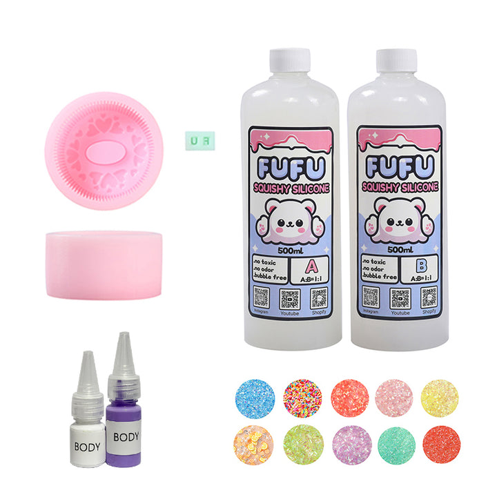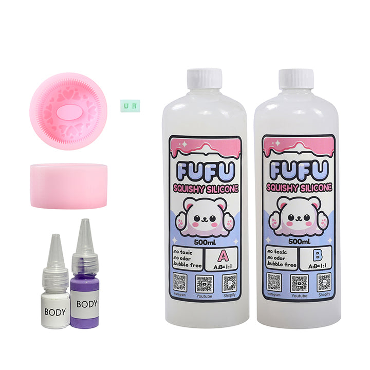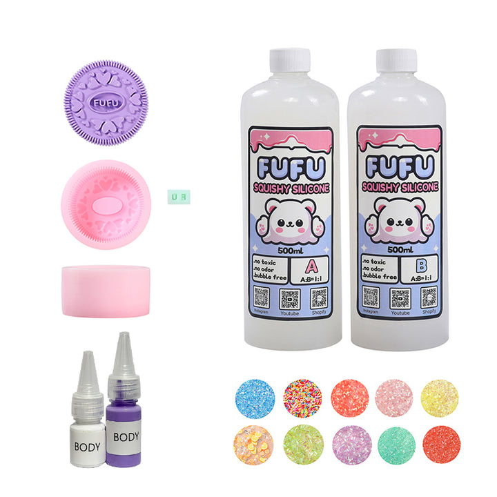 Mold+250mlGlueA&B+Color Paste(two color)+Charms(10 bags)+200g Purple FuFu Cookie Squishy
