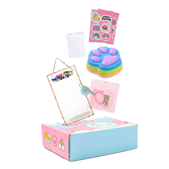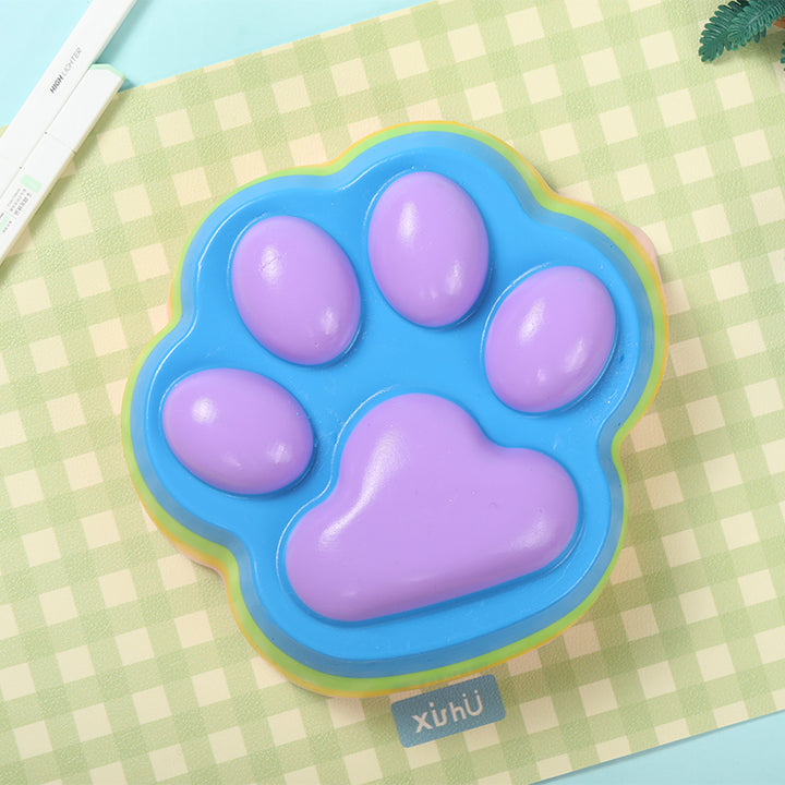❤️The 2100g Blue Base Multicolor Paw Taba Squishy was inspired by the cozy memory of leaving paw prints on soft sand——the paw pad shines in purple, resting on a playful base that blends blue, green, orange, and pink into a lively mosaic of colors. Every squeeze brings a mix of softness and bounce, making it feel like holding a magical paw full of joy.