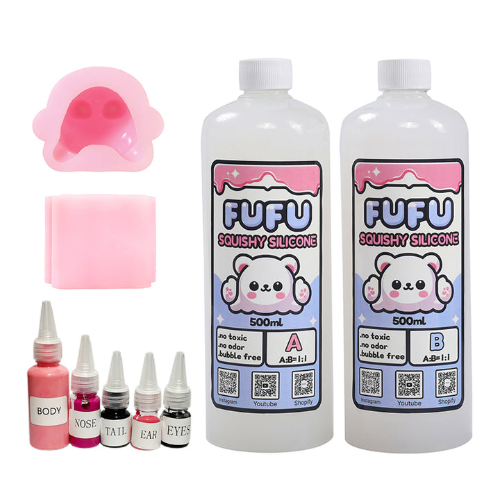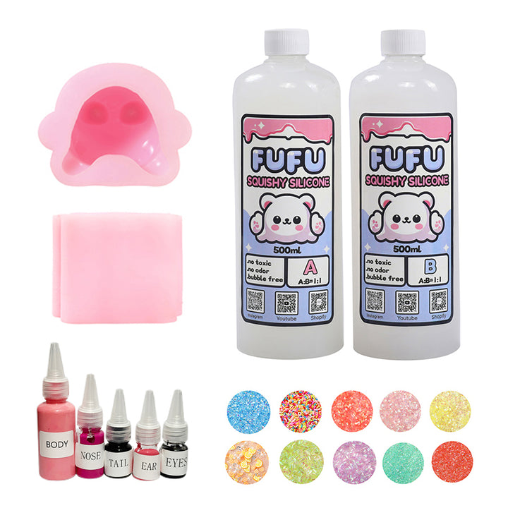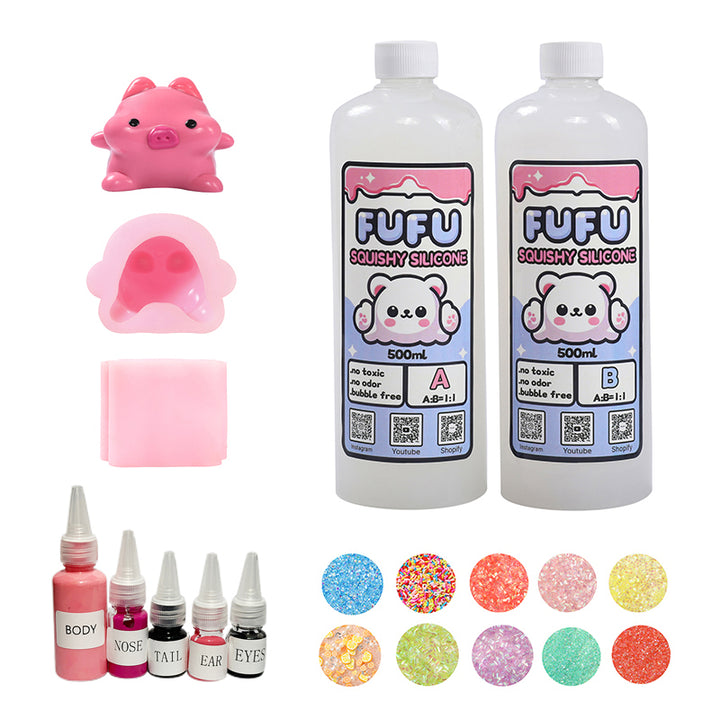 Mold+2*500mlGlueA&B+Color Paste(five color)+Charms(10 bags)+2100g Pink Pig Squishy