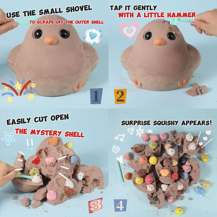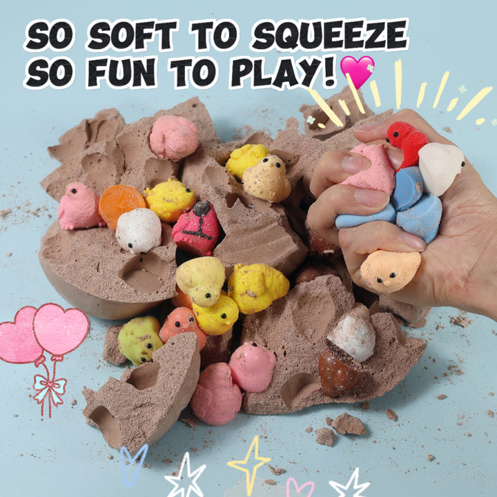 30+pcs FUFUSQUISHY Giant Caramel Chicken Squishy Dig Kit