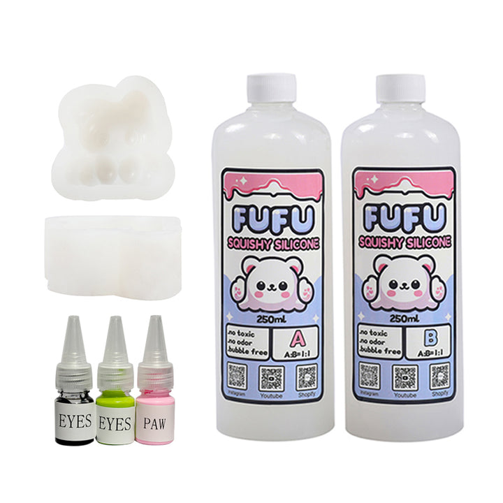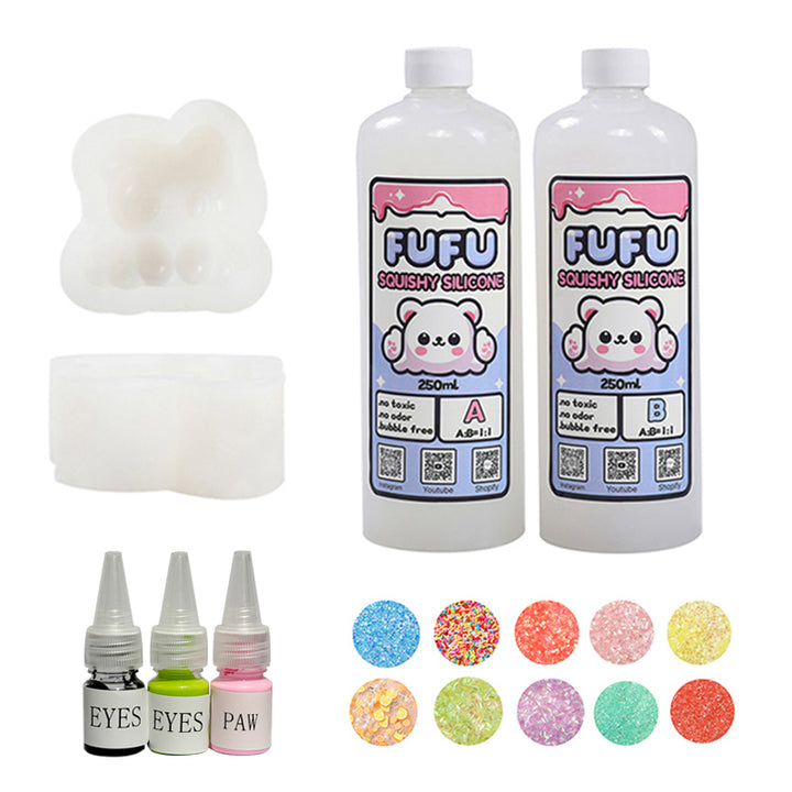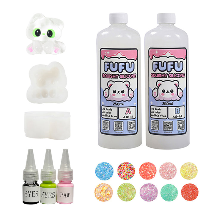 Mold+250mlGlueA&B+Color Paste(three color)+Charms(10 bags)+80g Crystal Elf Kitty Squishy