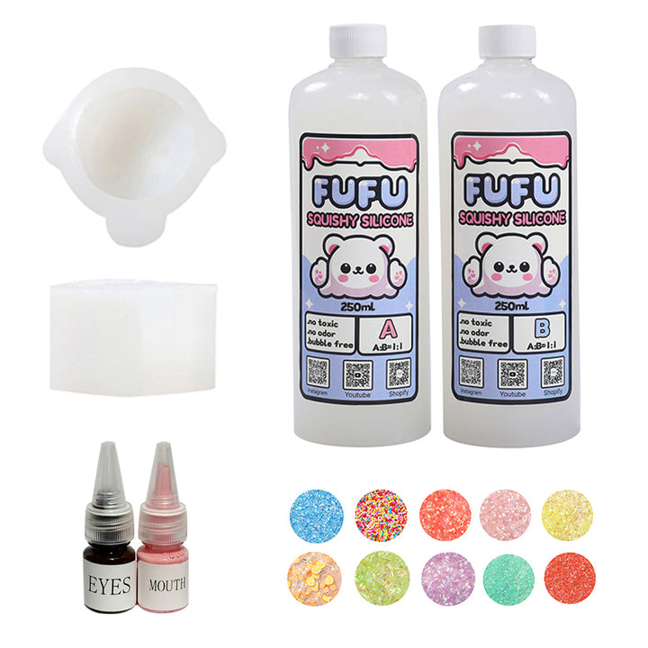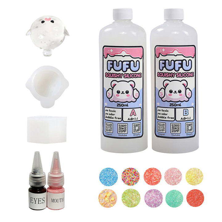 Mold+250mlGlueA&B+Color Paste(two color)+Charms(10 bags)+Crystal Pufferfish Squishy