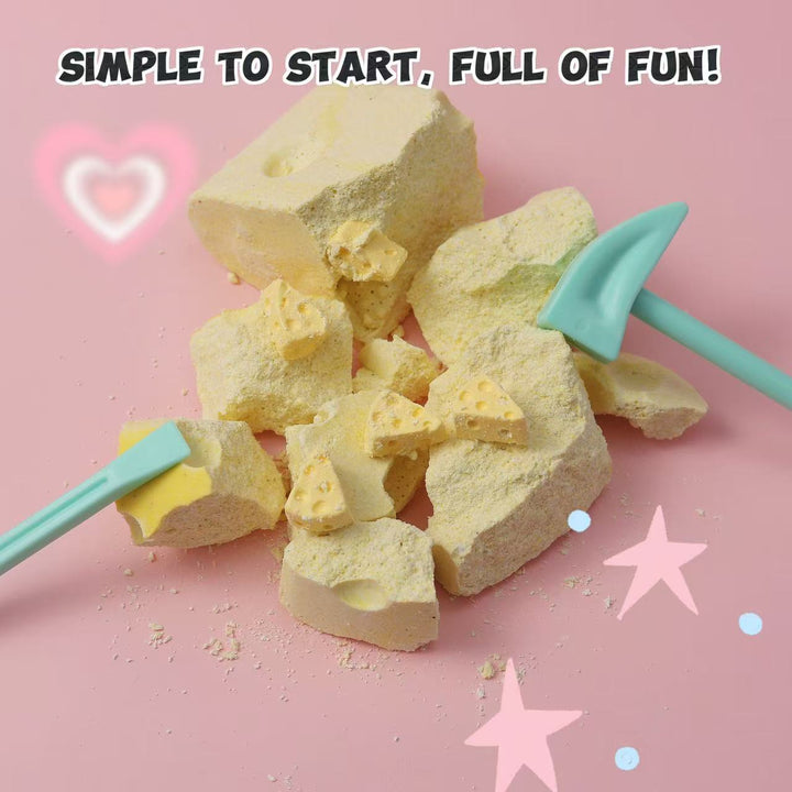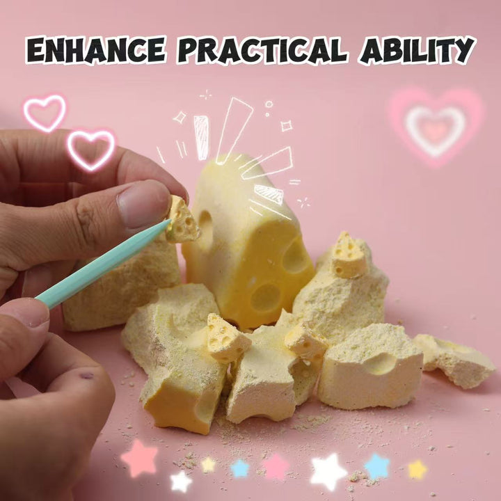 Get ready for a delightfully “cheesy” adventure! Hidden inside the clay block lies a Cheese Squishy, waiting to be uncovered. Use your digging tools to chip, scrape, and reveal this soft, bouncy slice of fun — perfect for squeezing, collecting, or gifting to someone who loves a good laugh! 💛✨