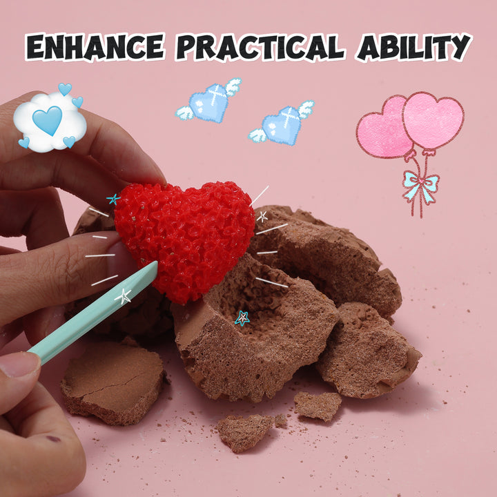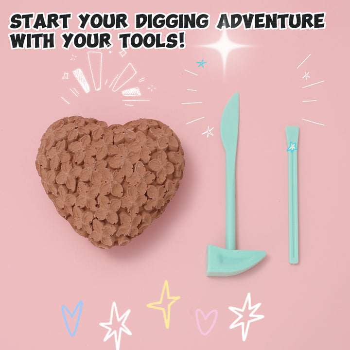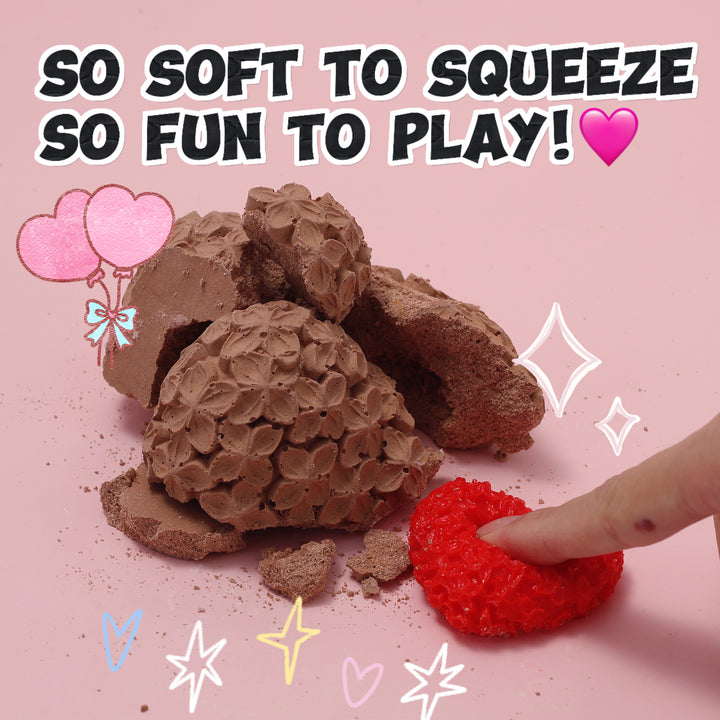 Uncover the beauty hidden within! Inside the clay block lies a Flower Heart Squishy, a dreamy mix of floral charm and heart-shaped sweetness. Use your digging tools to chip, scrape, and reveal this soft, pastel treasure — gentle, soothing, and full of love with every squish. 💕✨