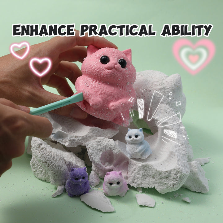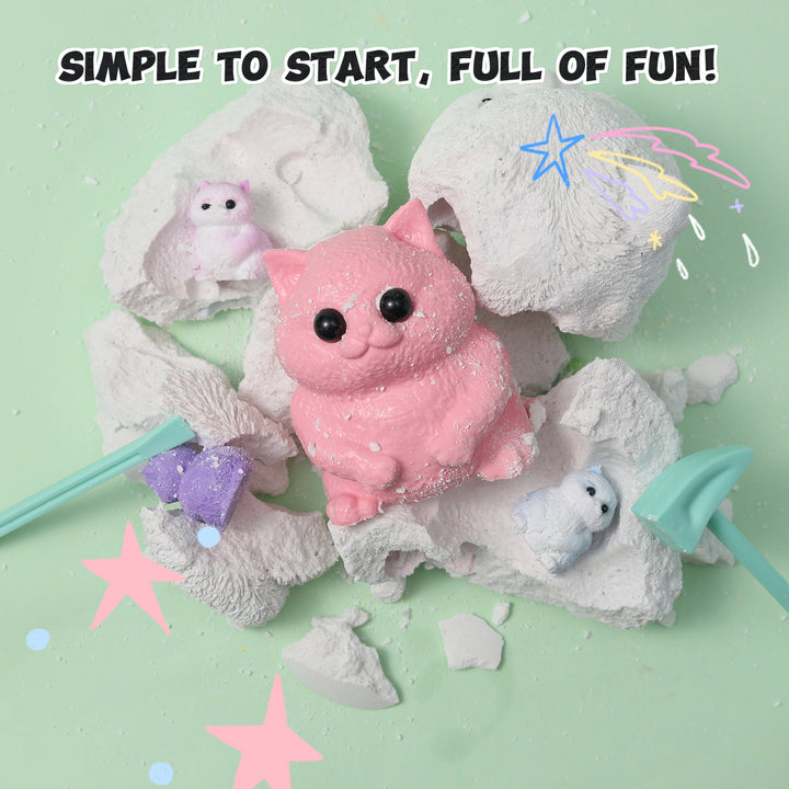 Dig into the block, chip away the layers, and reveal a super satisfying giant cat squishy—soft, slow-rising, and irresistibly adorable. Hidden mini surprises inside make every dig a thrilling adventure! 💖