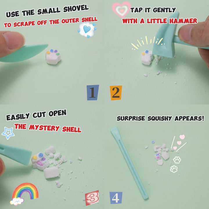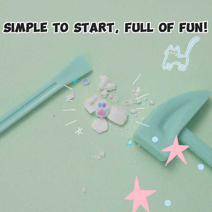 Get ready for a purr-fect surprise! Hidden inside the clay block lies a Mini Cat Paw Squishy, waiting to be discovered. Use your digging tools to chip, scrape, and reveal this soft, squishy little paw — tiny, adorable, and oh-so-satisfying to squeeze! 💖✨