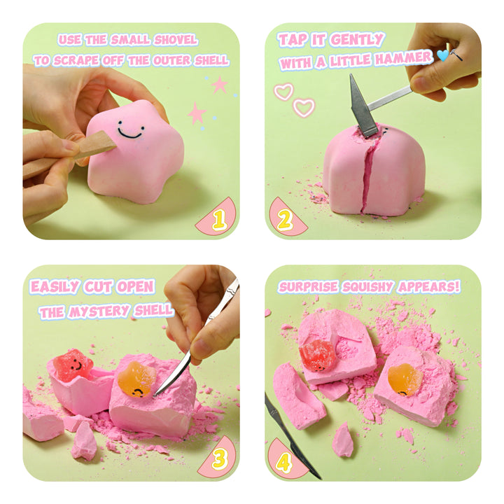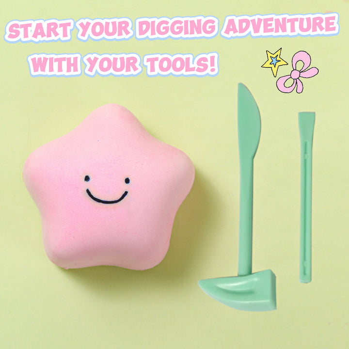 FUFUSQUISHY Pink Smile Face Star Squishy Dig Kit