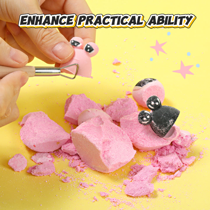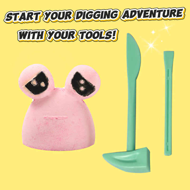 Time to dig out your squishy buddy! Hidden inside the clay block lies a Pou Squishy, waiting to be discovered. Use your digging tools to chip, scrape, and reveal this adorable, round little friend — soft, squishy, and full of charm! 💖