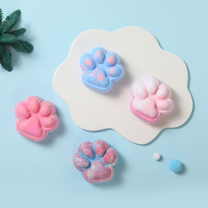 • 4 paw squishies in blue, red, blush white, and brown tones