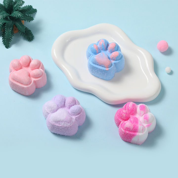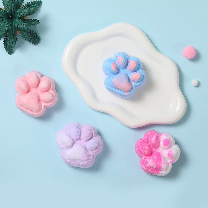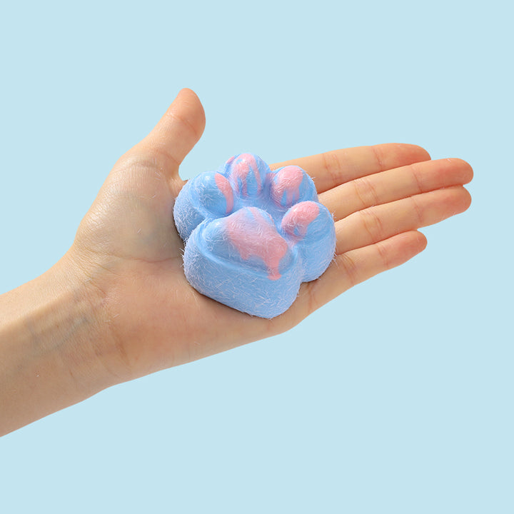 • 4 paw squishies in pastel blue, pink, violet, and rosy white